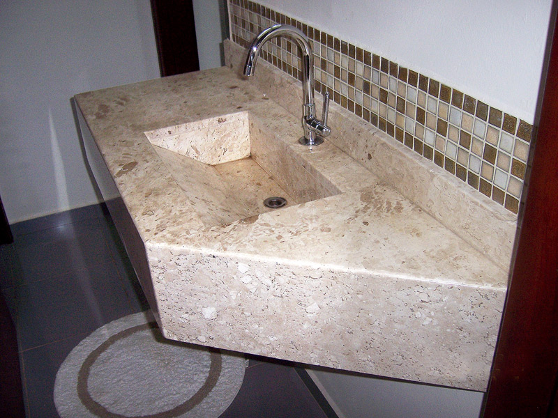 Lavatorio em Marmore Travertino com cuba em marmore