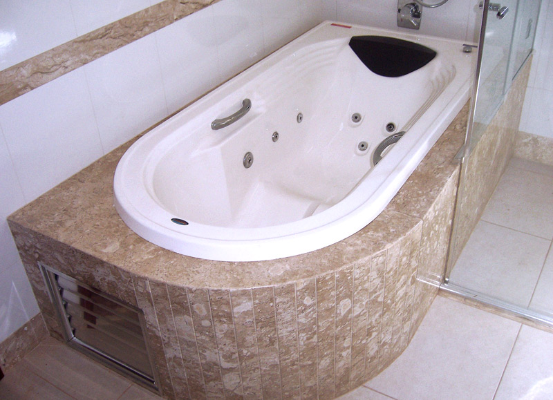 Banheira revestida em Marmore Travertino