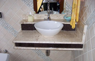 Lavatorio em Travertino com sanduiche em Granito Caf