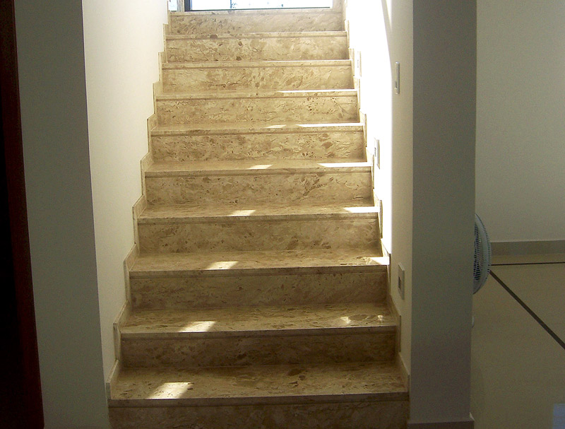 Escada revestida em Granito Branco Dallas e laterais em Granito Preto Sao Gabriel
